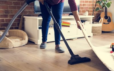 Black woman is cleaning room